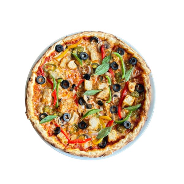 Xander’s Tomato Sauce, Grilled Chicken, Jalapenos, Bell Peppers, Mushrooms, Onions, Black Olives & Imported Mozzarella & Parmesan