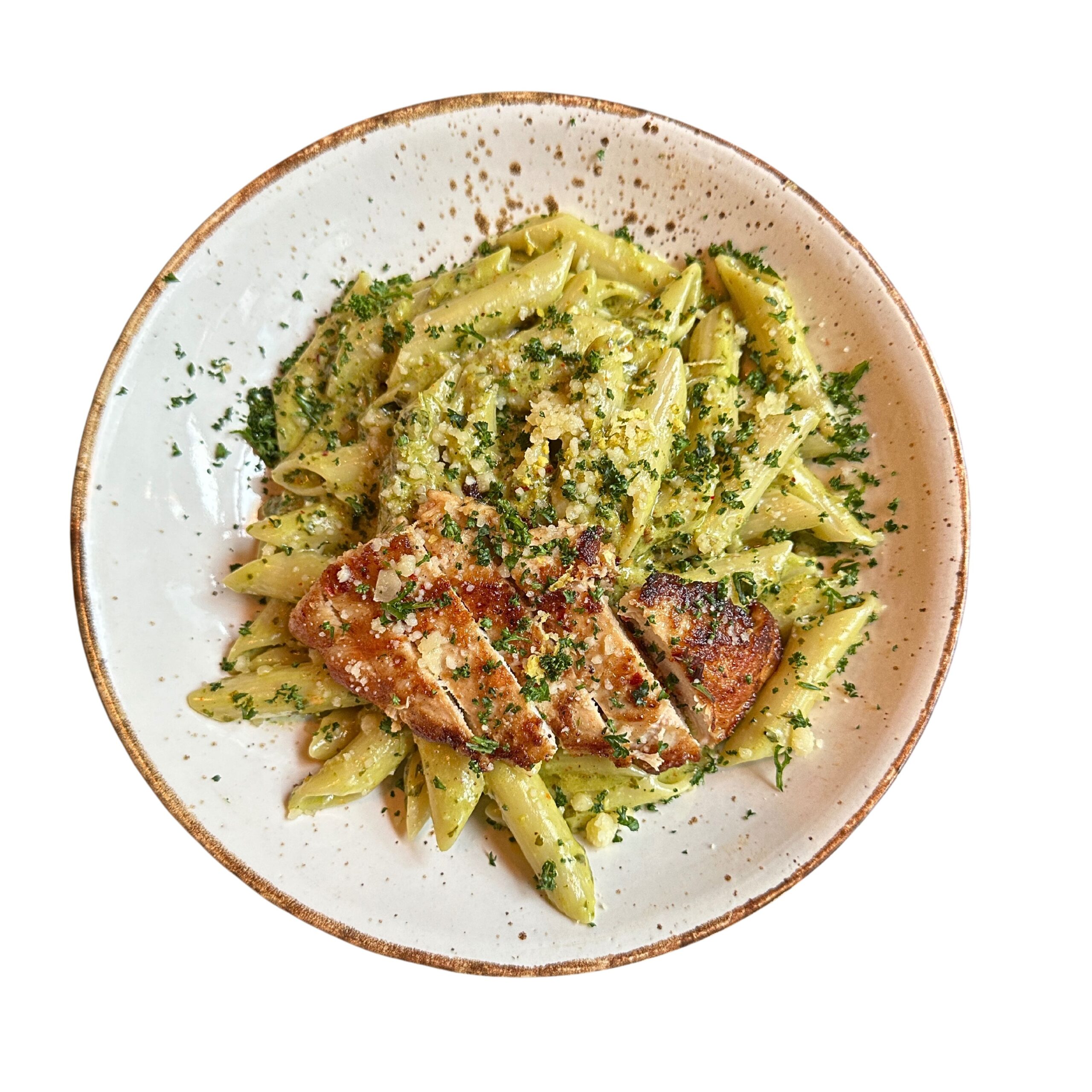 GRILLED CHICKEN ALFREDO PESTO PASTA