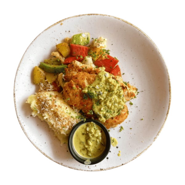 Grilled Chicken Fillet with a Spicy Orange Infused Jalapeno Sauce & Sauteed Vegetables