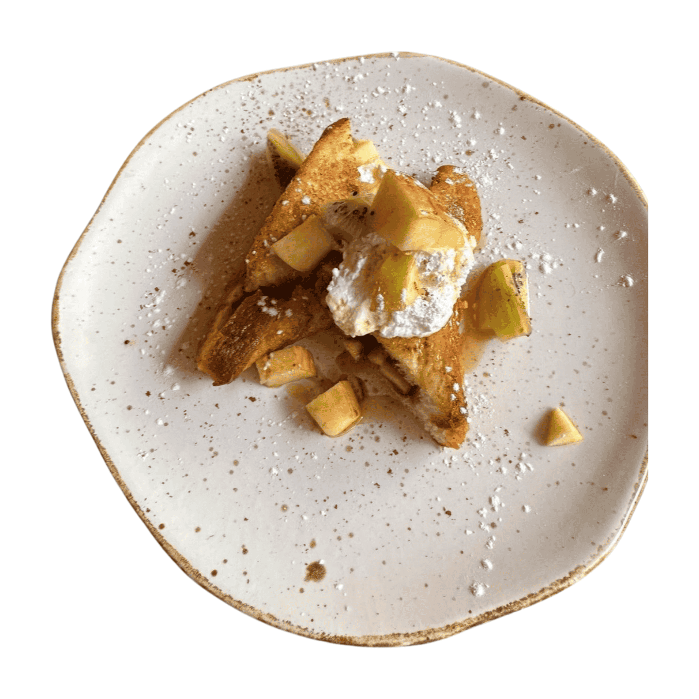Golden French Toast with Caramelized Apples & Stuffed with Dollops of Nutella & Topped with Whipped Cream