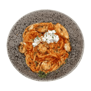 LINGUINE WITH ROASTED TOMATO & PAN-SEARED PRAWNS