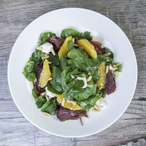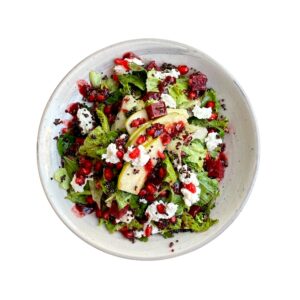 Rocket & Mint Salad with Quinoa, Cranberries, Feta, Mushrooms, Black Olives & Wilted Cherry Tomatoes & a Lemon & Olive Oil Vinigrette